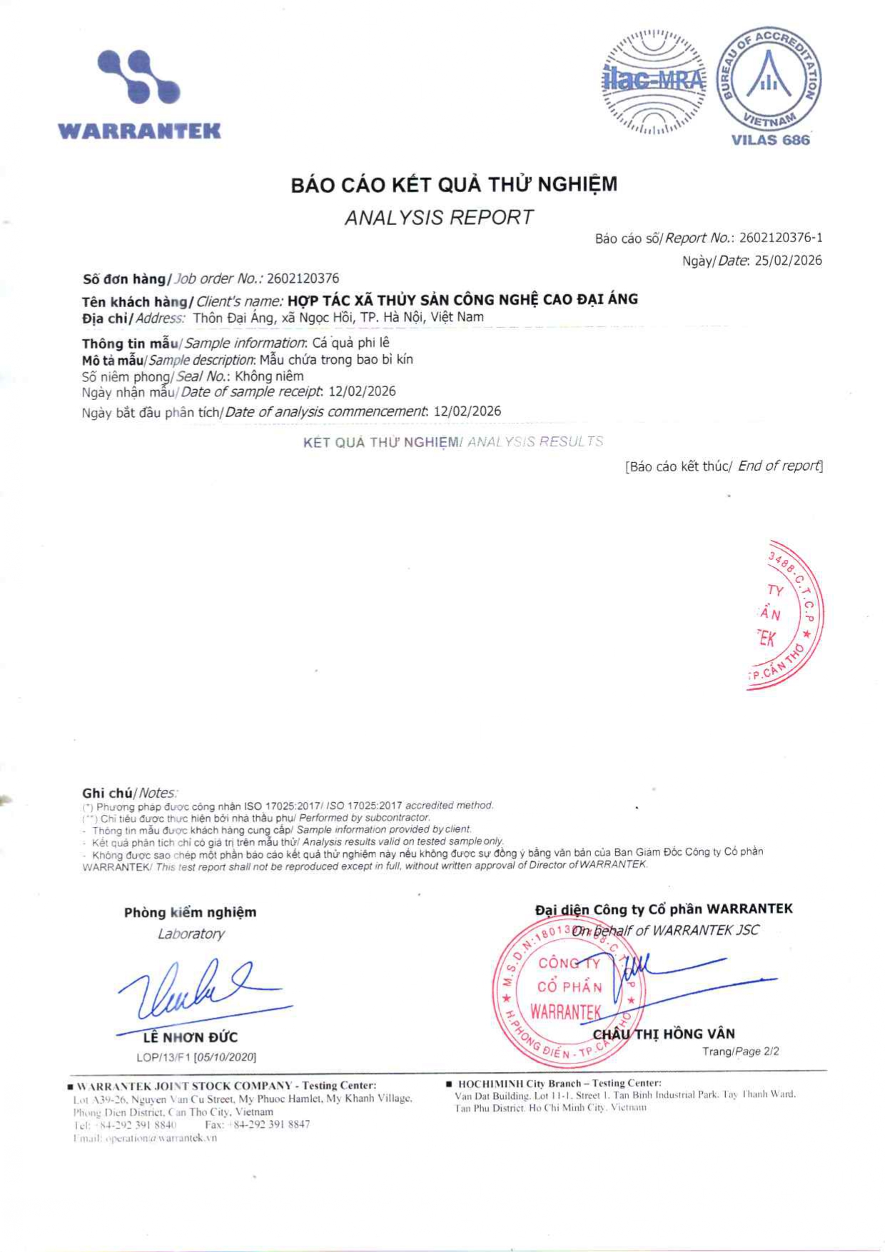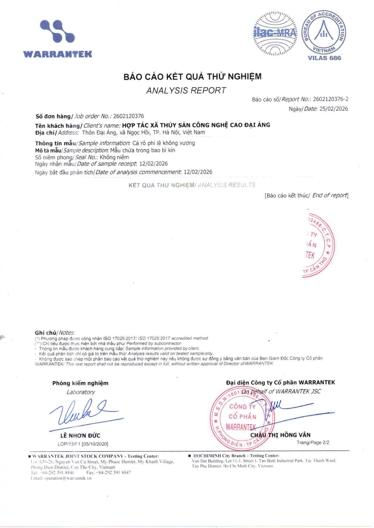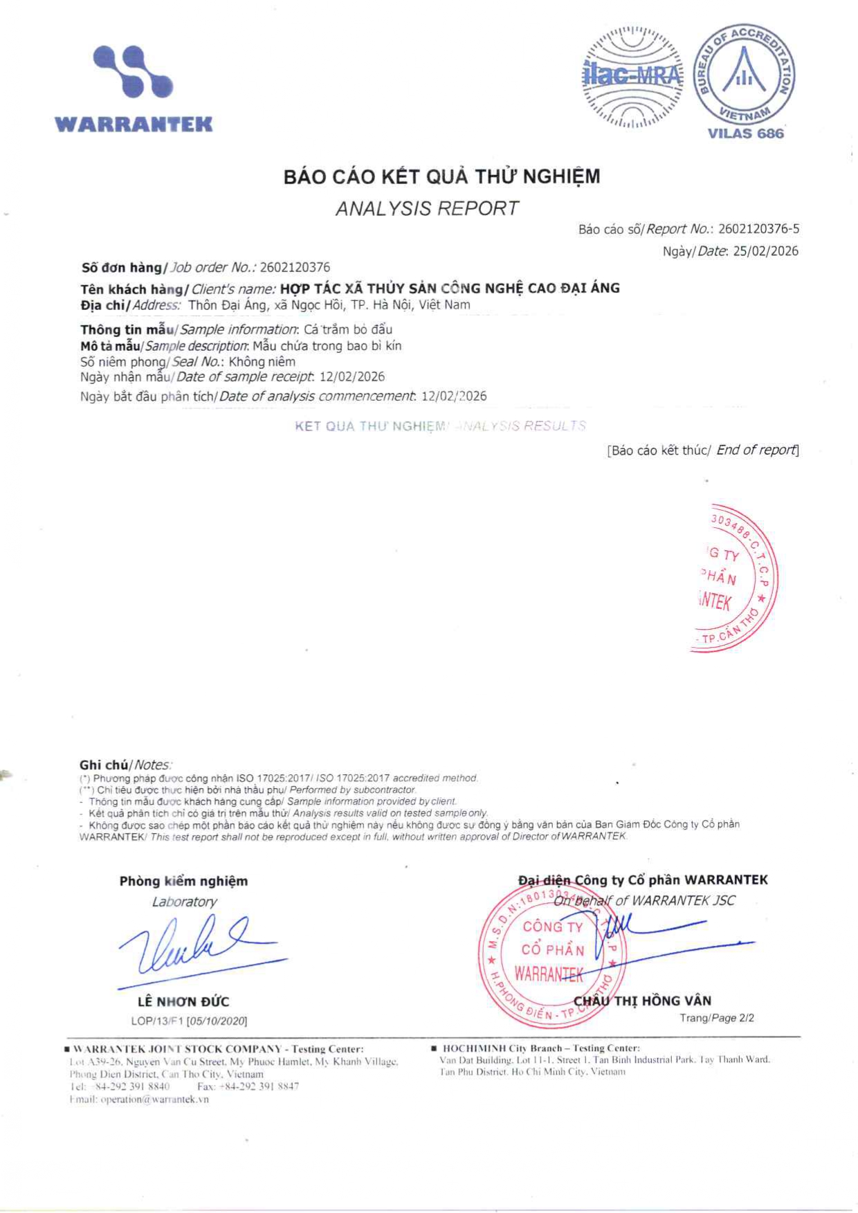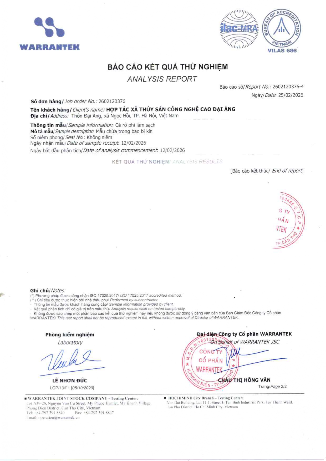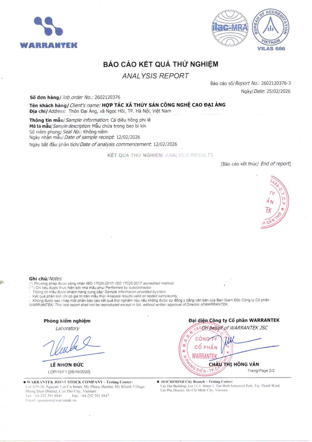- Hợp tác xã thủy sản công nghệ cao Đại Áng hiện ký sử dụng và phân phối với Tập đoàn thức ăn chăn nuôi CJ của Hàn Quốc hiện thuộc top 10 thương hiệu uy tín nhất thị trường Việt Nam. Thức ăn chăn nuôi do tập đoàn CJ cung cấp đáp ứng đầy đủ nhu cầu dinh dưỡng phát triển cho cá từ giai đoạn con giống đến khi thu hoạch bao gồm protein, canxi các loại vi lượng khoáng chất và tuyệt đối không có các chất kích thích tăng trưởng.