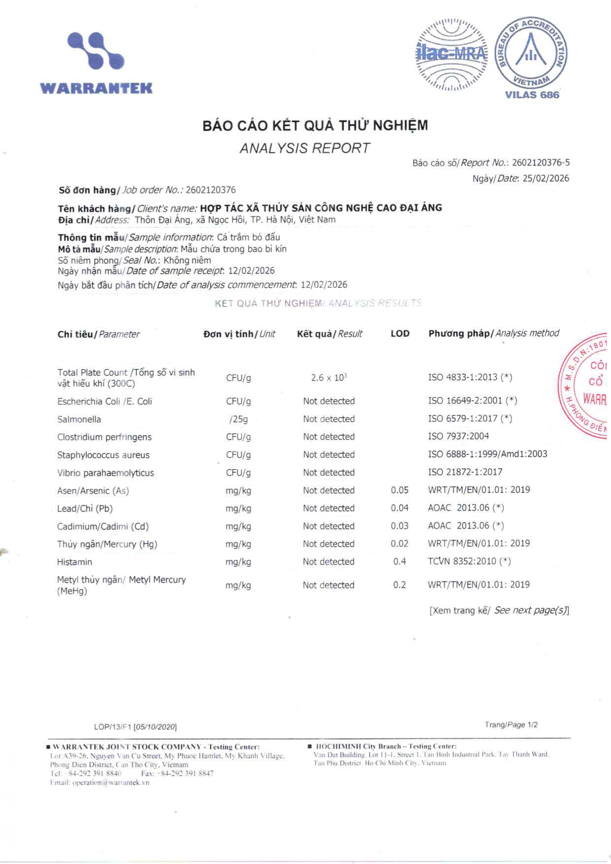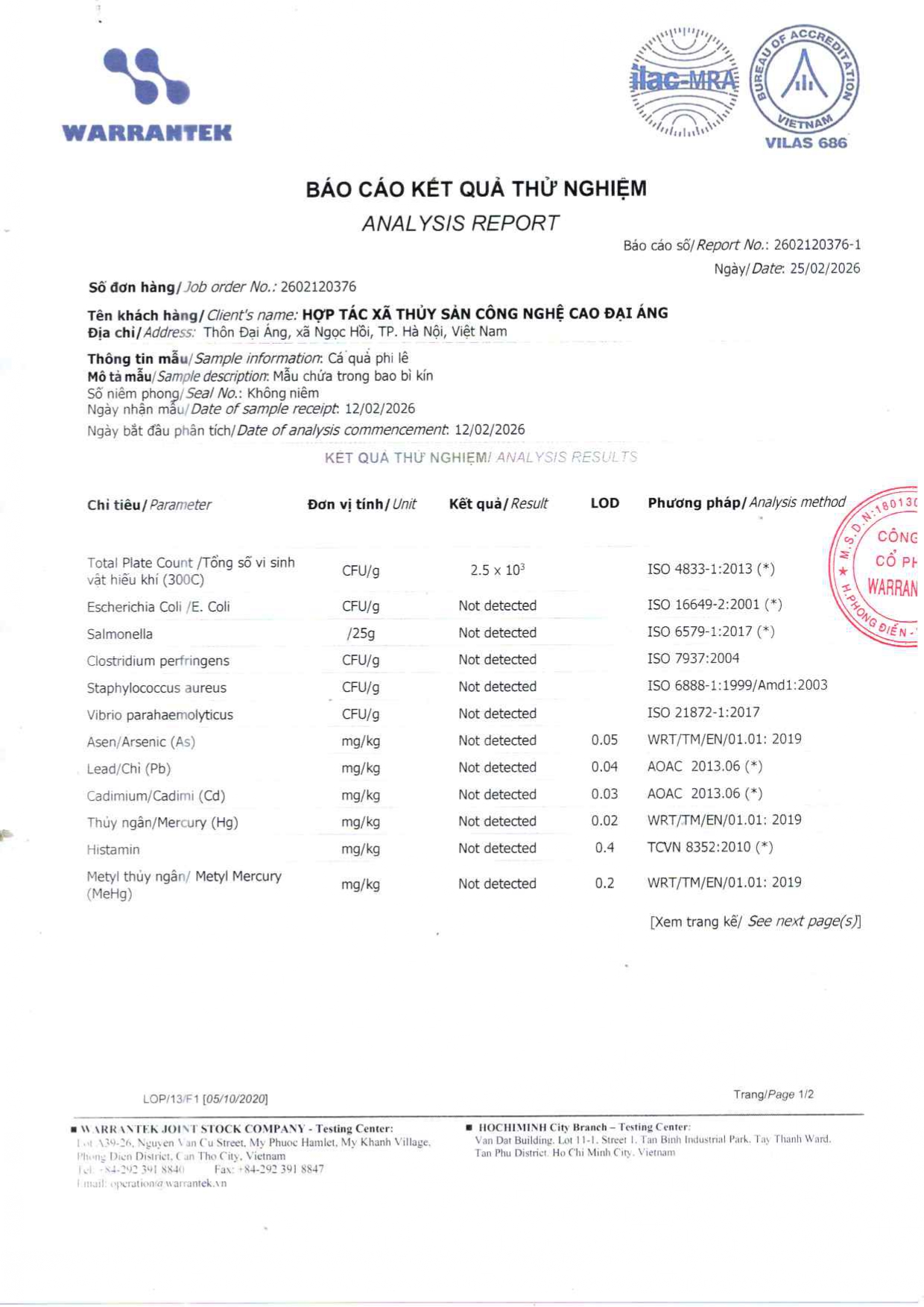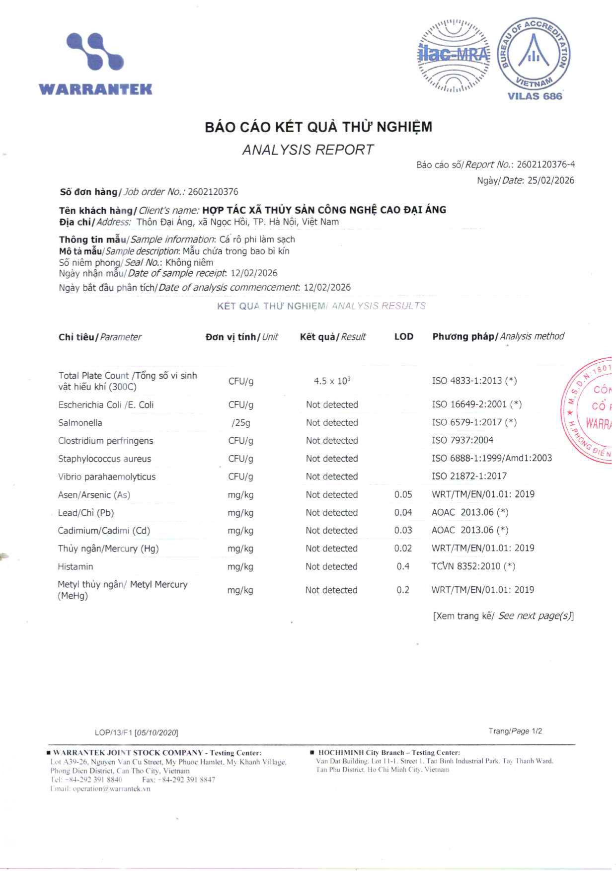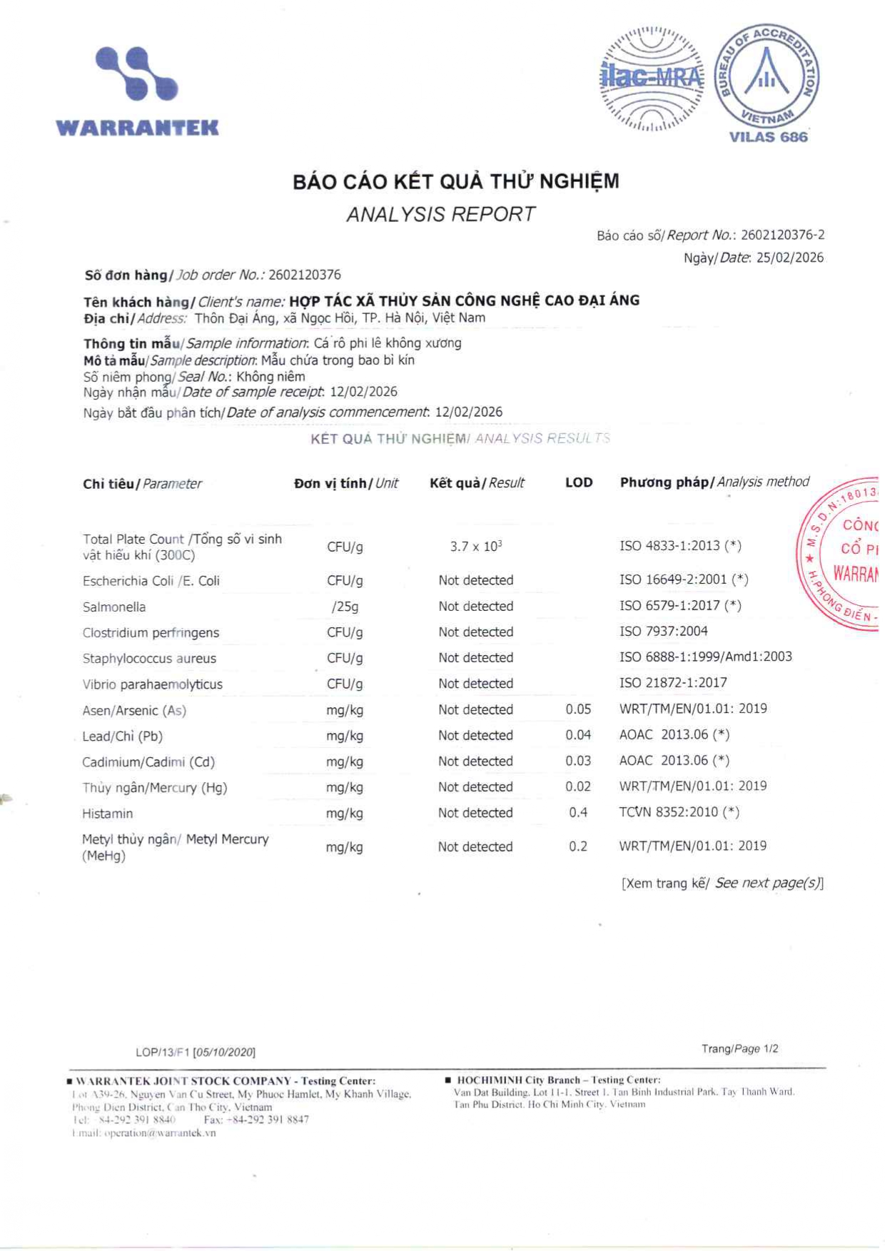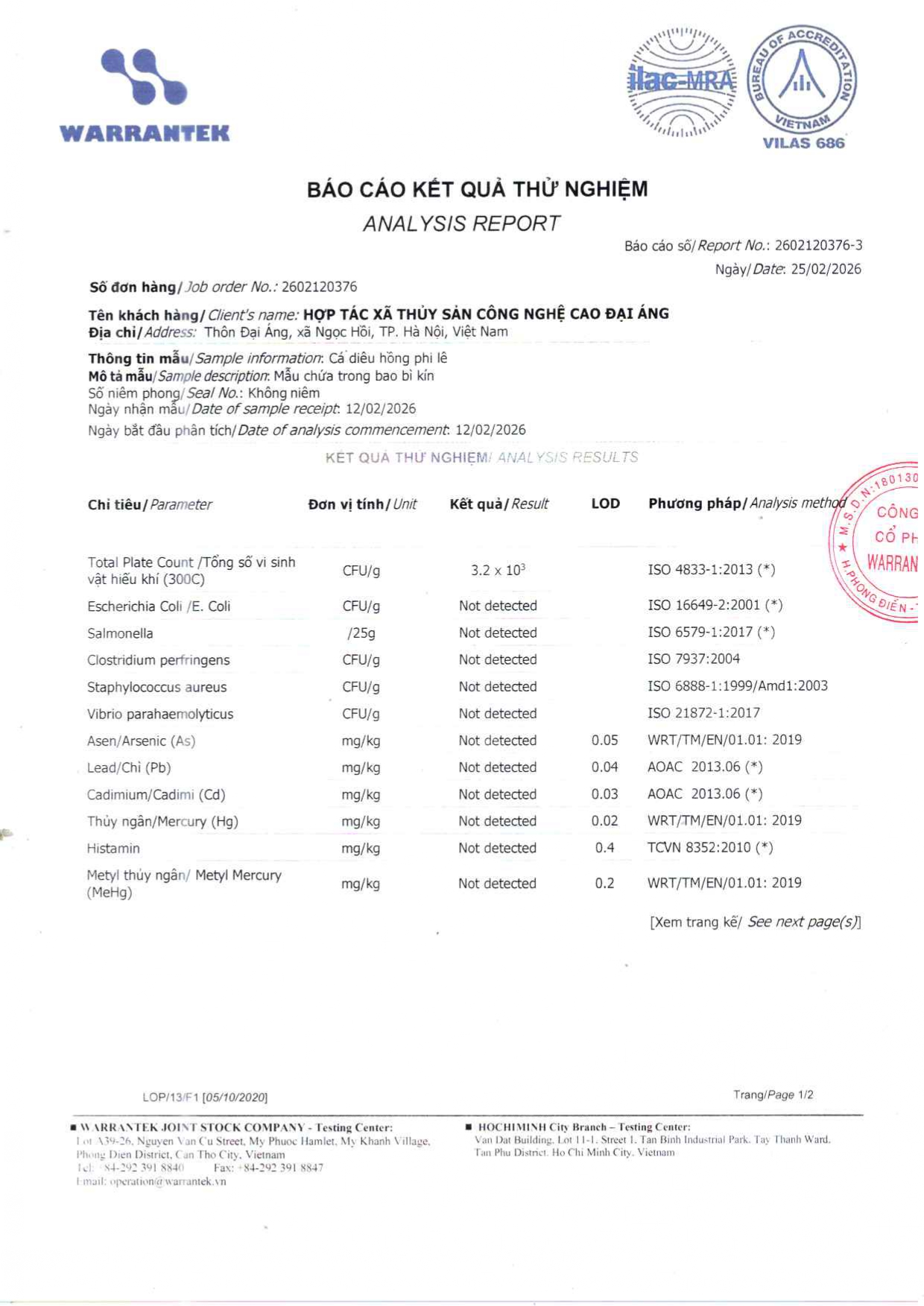 - Hợp tác xã thủy sản công nghệ cao Đại Áng hiện ký sử dụng và phân phối với Tập đoàn thức ăn chăn nuôi CJ của Hàn Quốc hiện thuộc top 10 thương hiệu uy tín nhất thị trường Việt Nam. Thức ăn chăn nuôi do tập đoàn CJ cung cấp đáp ứng đầy đủ nhu cầu dinh dưỡng phát triển cho cá từ giai đoạn con giống đến khi thu hoạch bao gồm protein, canxi các loại vi lượng khoáng chất và tuyệt đối không có các chất kích thích tăng trưởng.