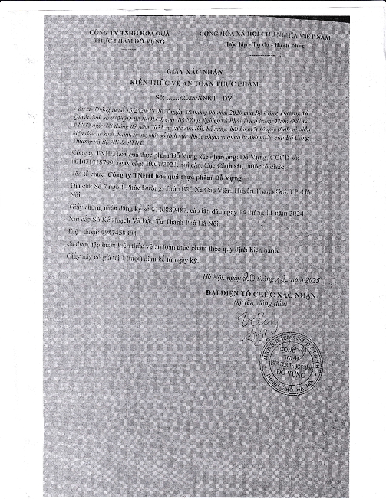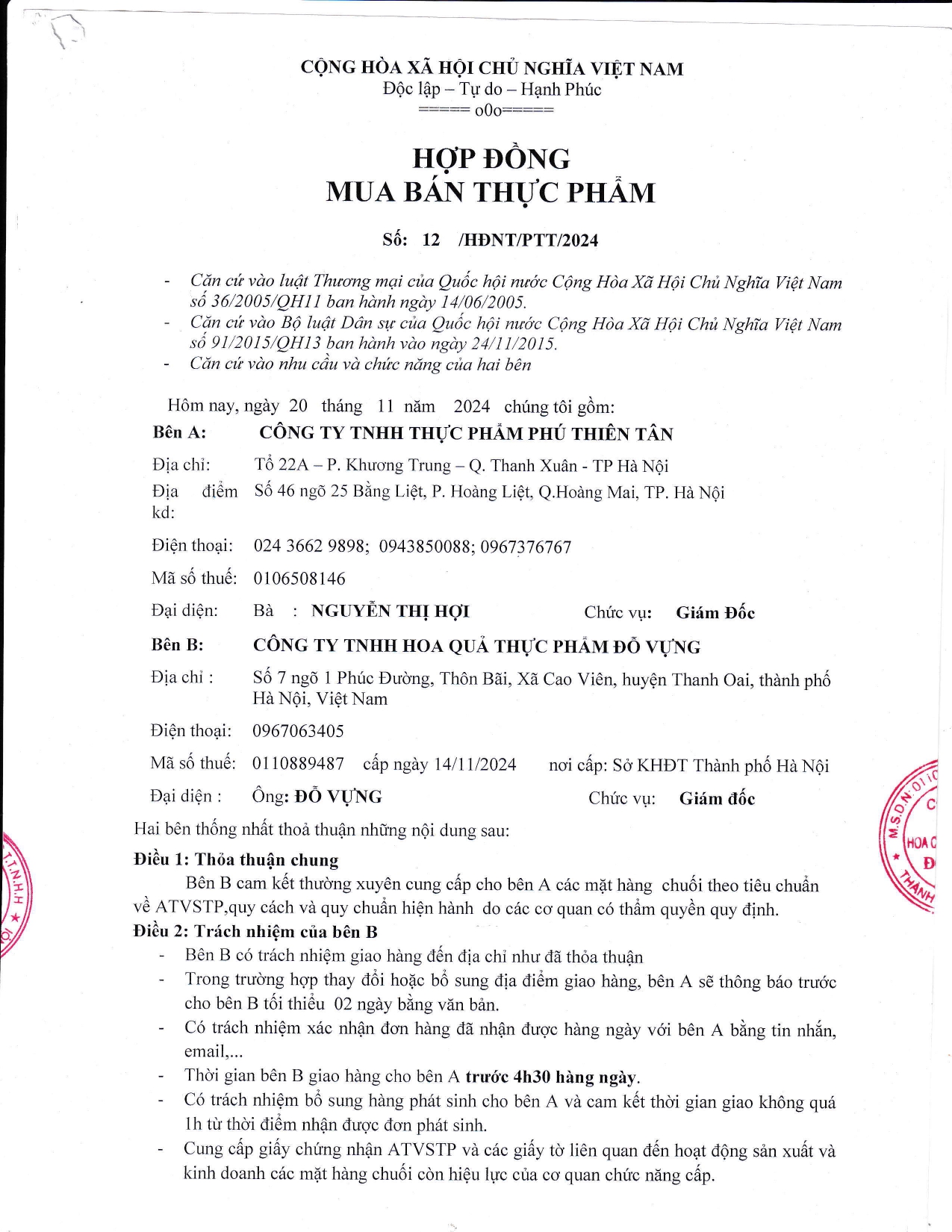 - Tên công ty: Công ty TNHH Thực phẩm Phú Thiên Tân - Địa chỉ: Số 46, ngõ 25, Bằng Liệt, Phường Hoàng Liệt, TP Hà Nội. - Số điện thoại: 0243.62.9898 – 094.592.7777