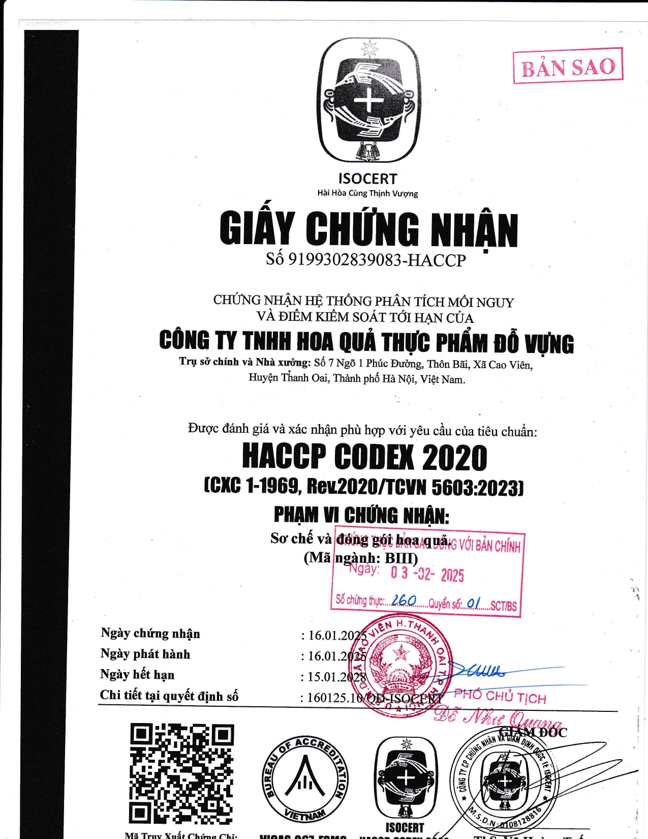 ĐƯỢC CHỨNG NHẬN: