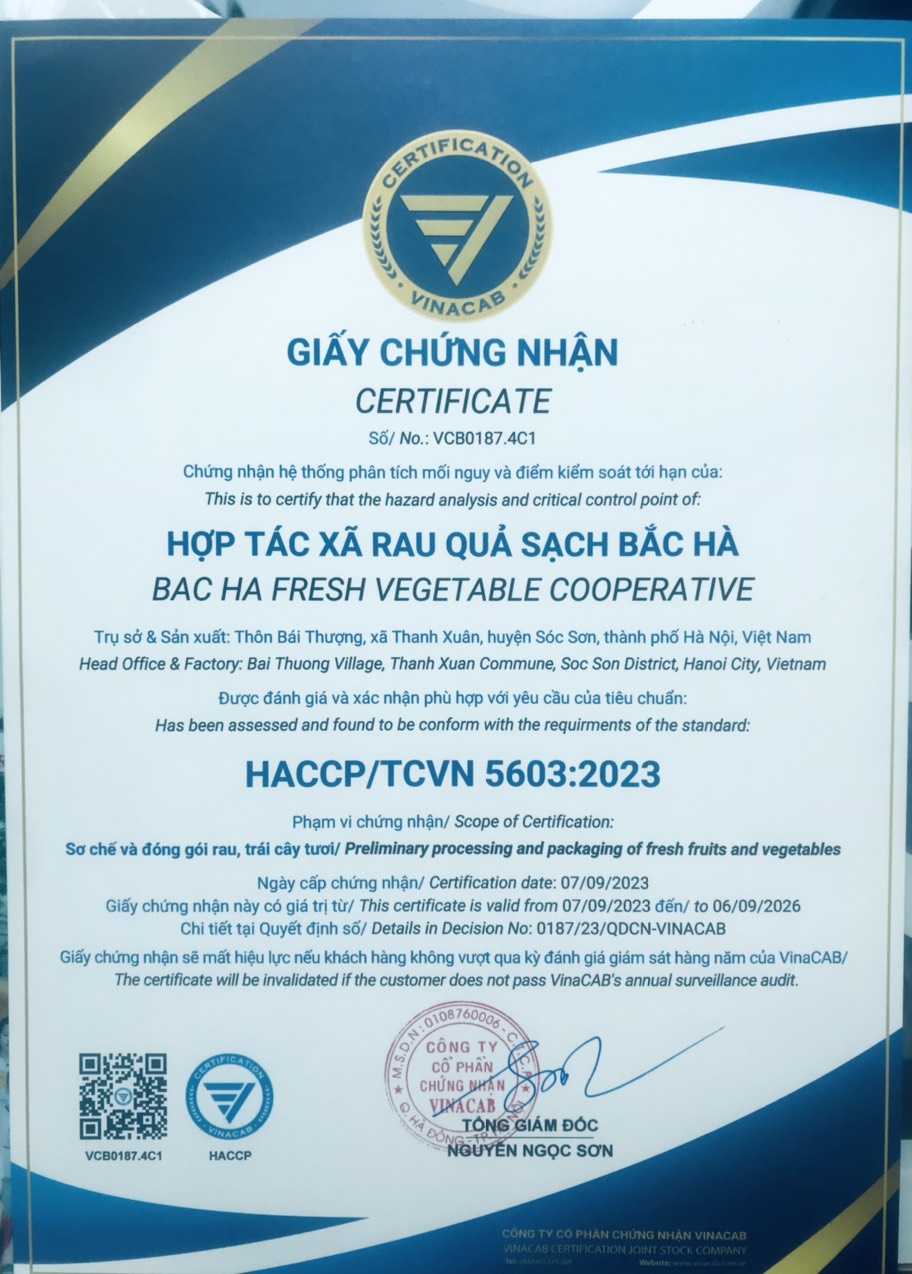 Hợp tác xã Rau quả sạch Bắc Hà xin kính chào quý khách, cảm ơn quý khách đã sử dụng sản phẩm của chúng tôi!