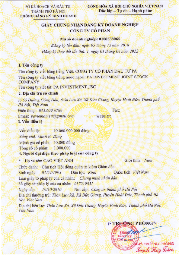 Địa điểm kinh doanh - Công ty Cổ phần đầu tư PA