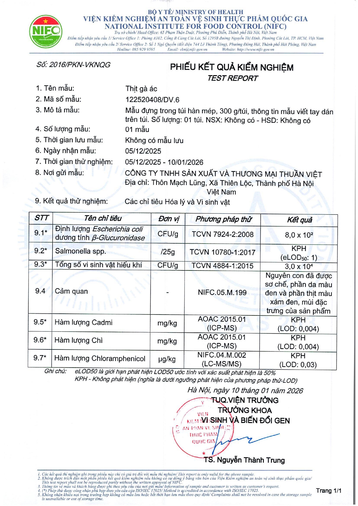 CÔNG TY TNHH SẢN XUẤT VÀ THƯƠNG MẠI THUẦN VIỆTTrụ sở : Thôn Mạch Lũng - Xã Đại Mạch - Huyện Đông Anh - Hà NộiQuy trình sản xuất đạt chứng nhận hệ thống quản lý chất lượng HACCP vì sức khỏe cộng đồng dựa trên nguồn nguyên liệu - Quy trình sản xuất, chăn nuôi - Chế biến - Giao nhận và kinh doanh được cam kết theo quy định của luật pháp tại Việt Nam.