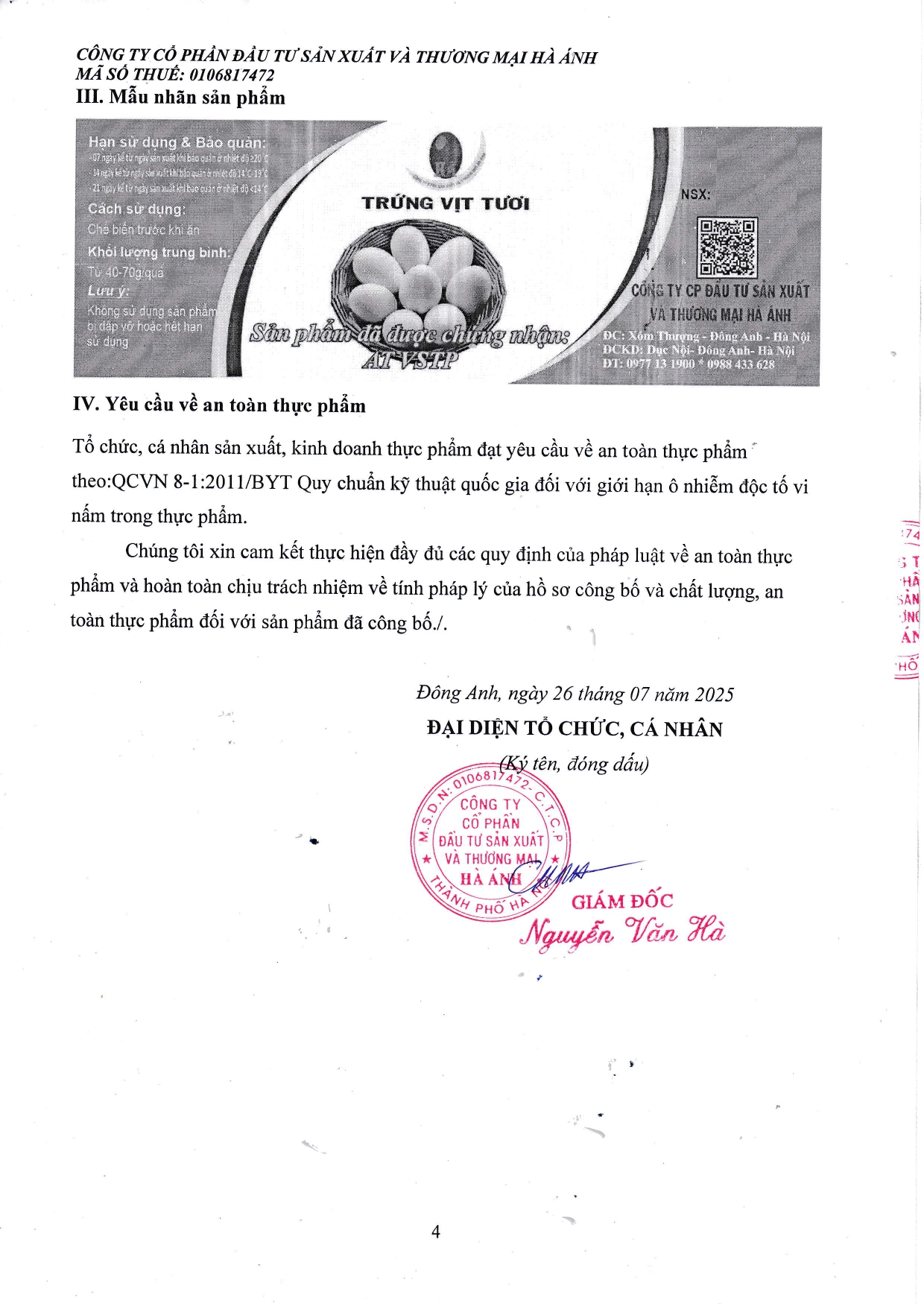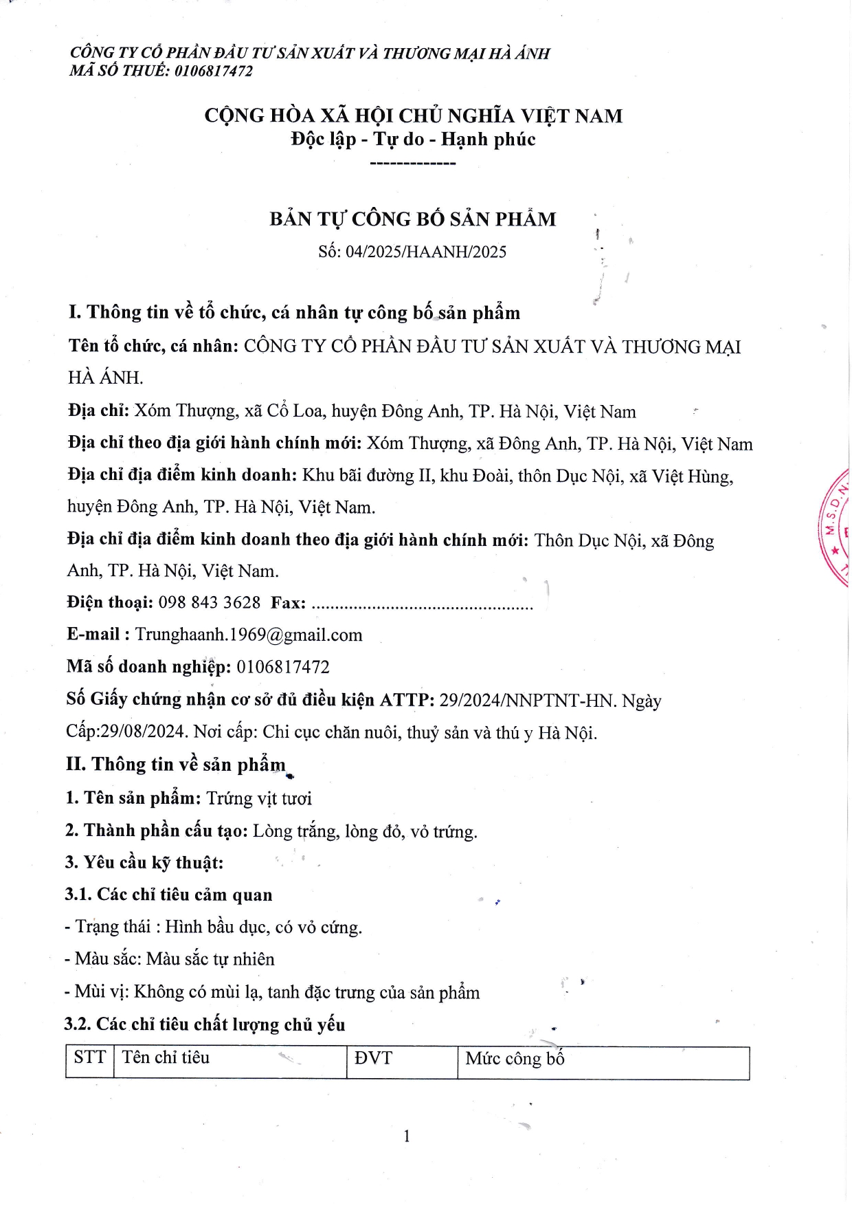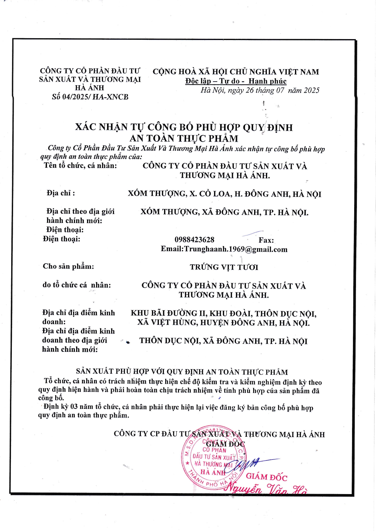Công ty cổ phần đầu tư sản xuất và thương mại Hà Ánh xin kính chào quý khách, cảm ơn quý khách đã sử dụng sản phẩm của chúng tôi!