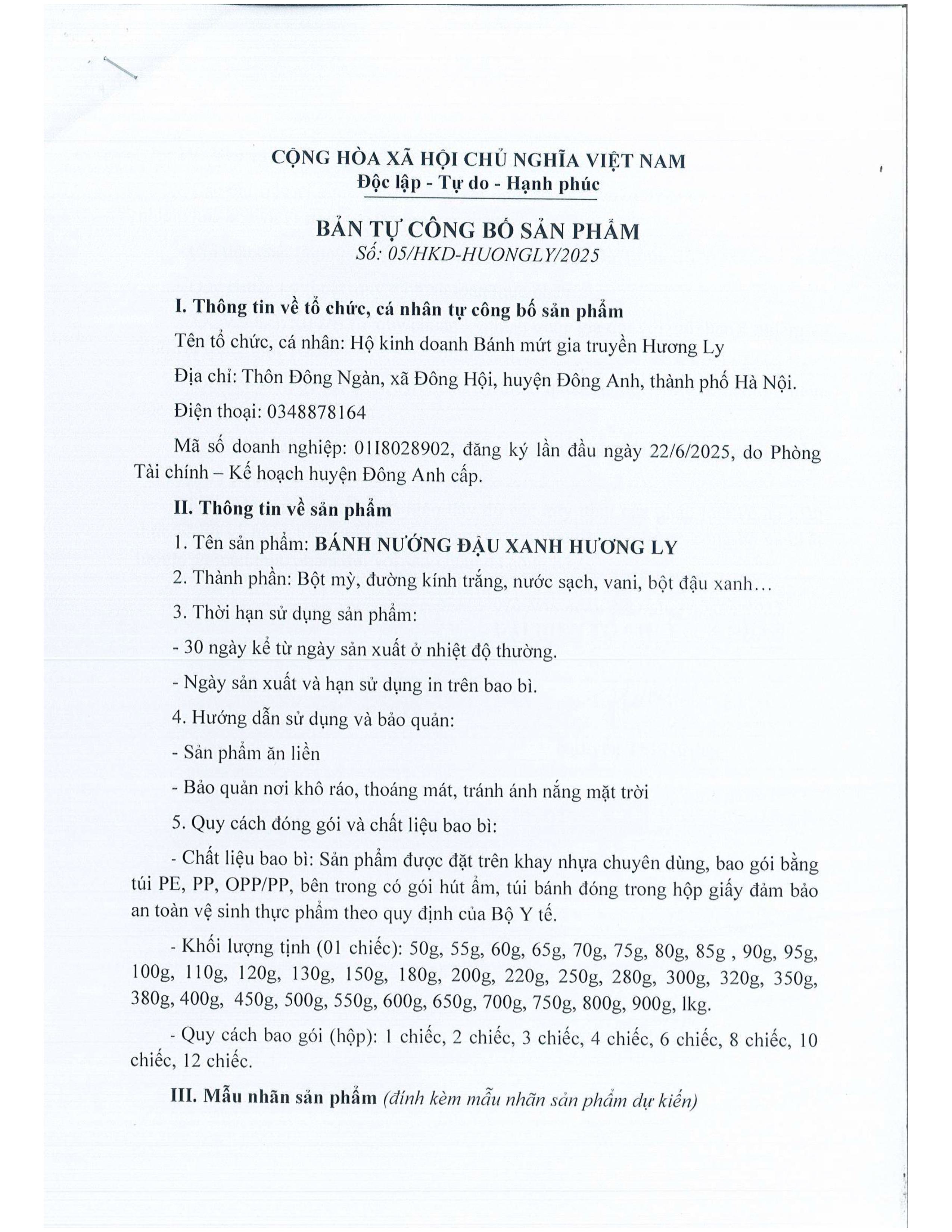 Tên sản phẩm Bánh nướng đậu xanh Hương Ly