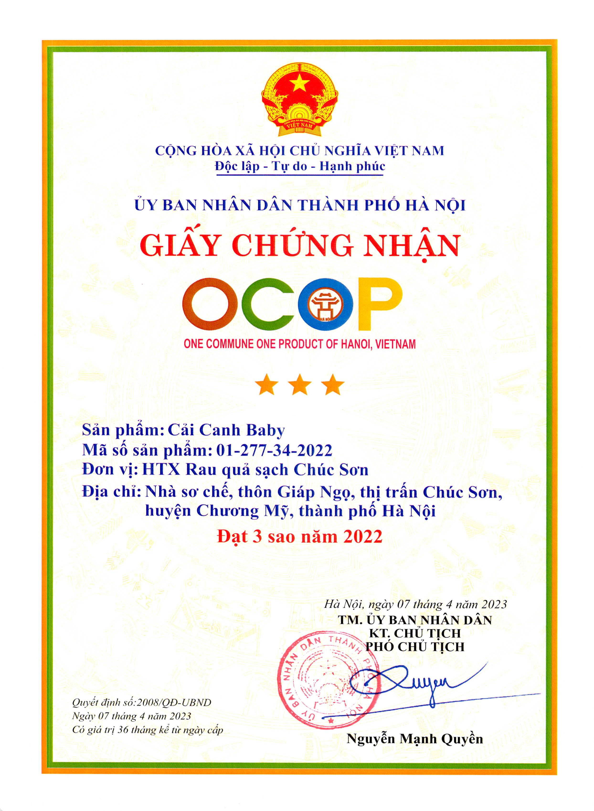 HTX Rau quả sạch Chúc Sơn xin kính chào quý khách, cảm ơn quý khách đã sử dụng sản phẩm của chúng tôi!