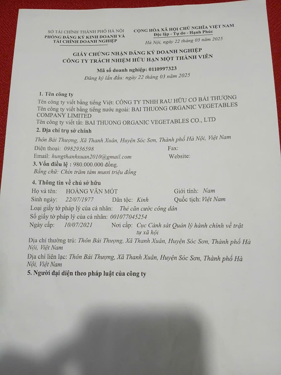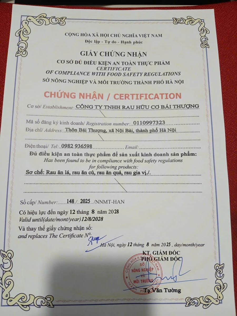 Nhà cung cấp Công ty TNHH rau hữu cơ Bái Thượng