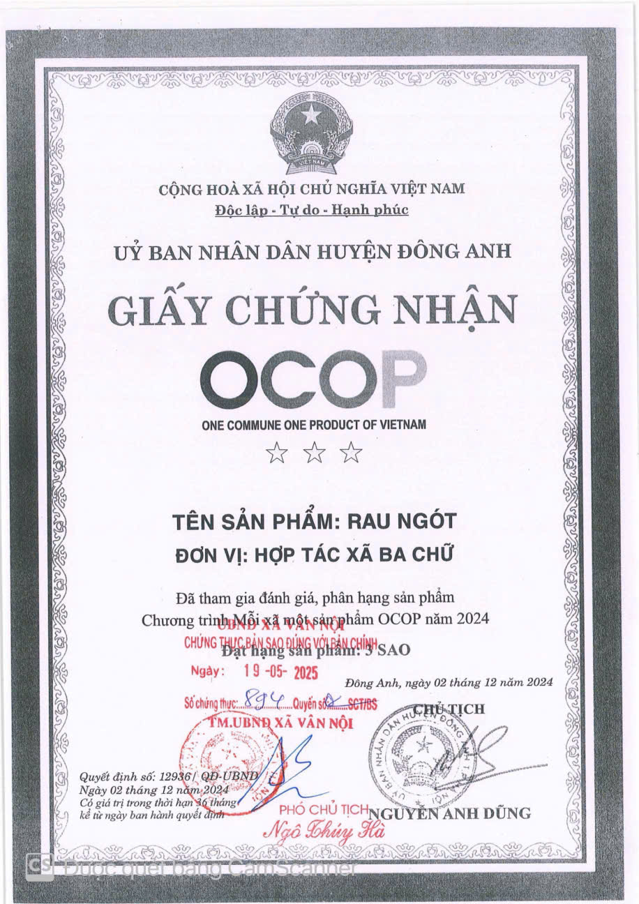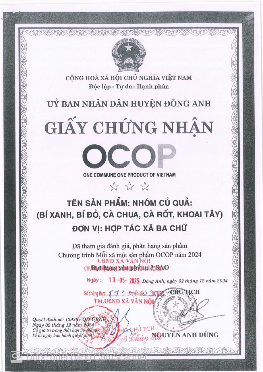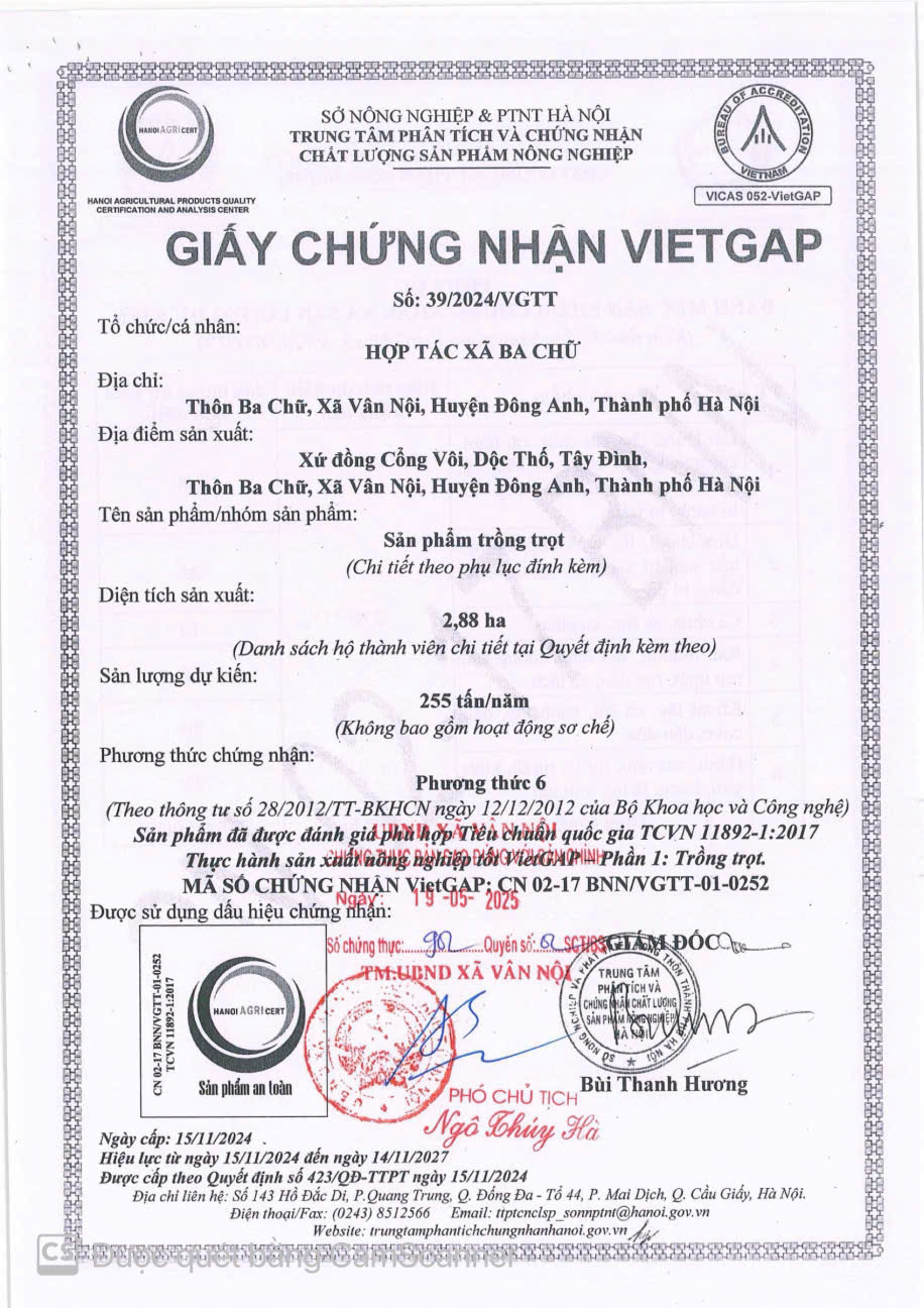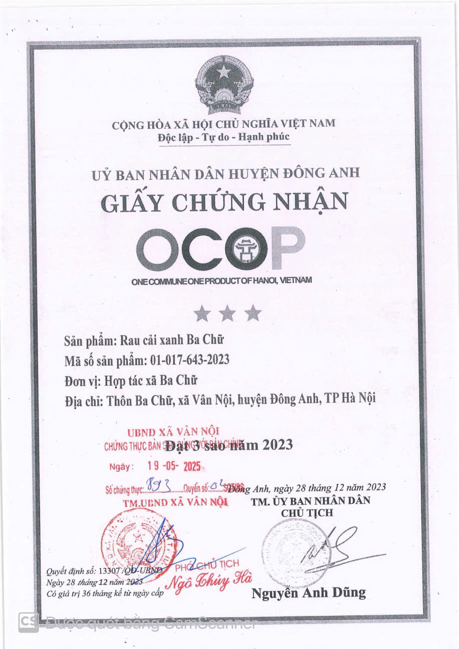 - Đơn vị: HTX BA CHỮ