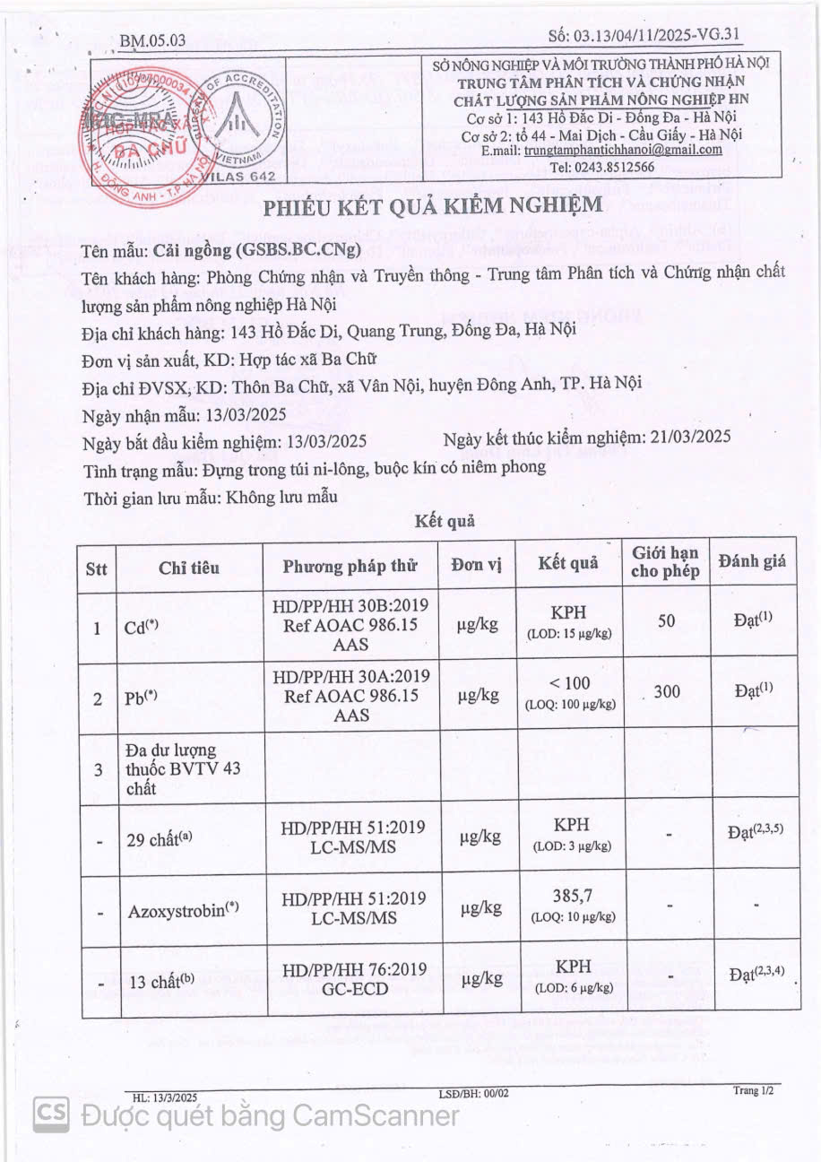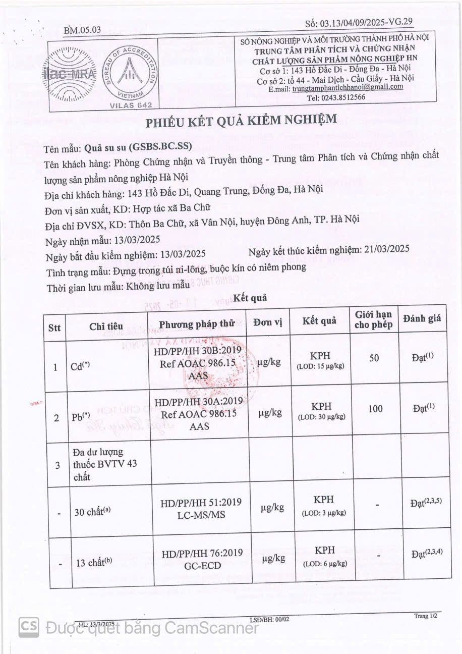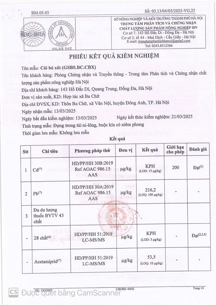 - Đơn vị: HTX BA CHỮ