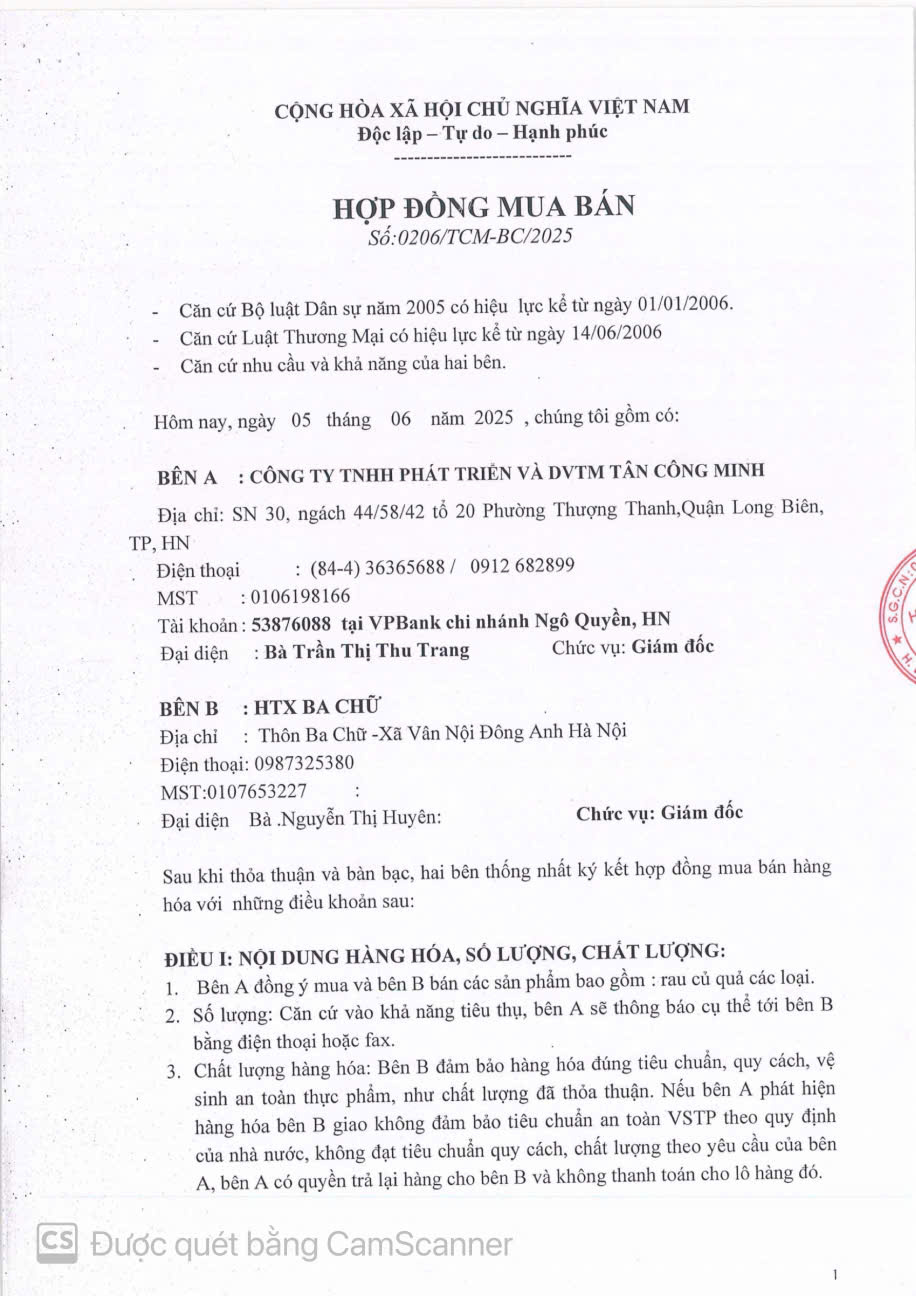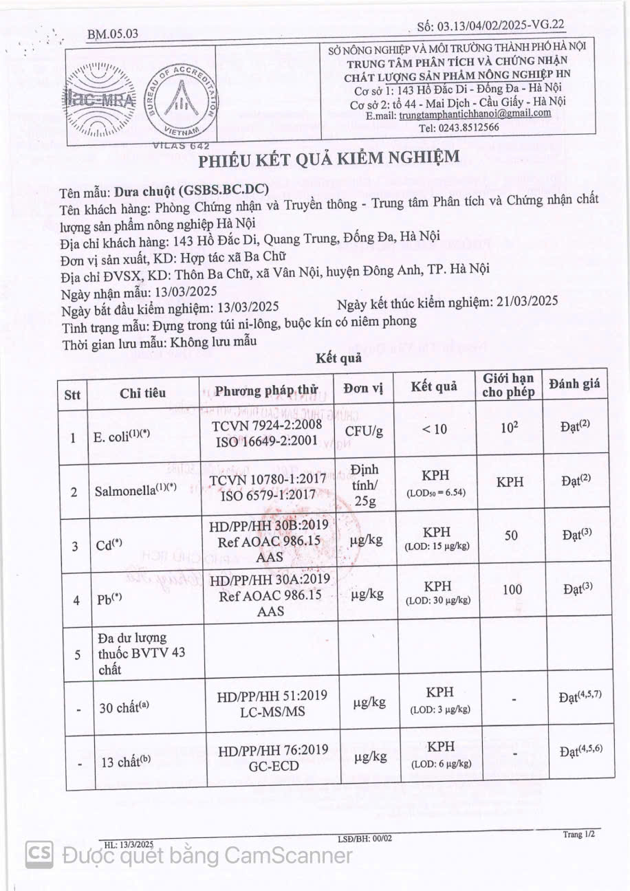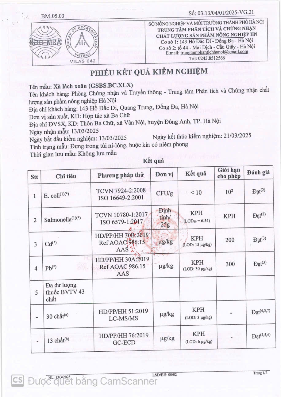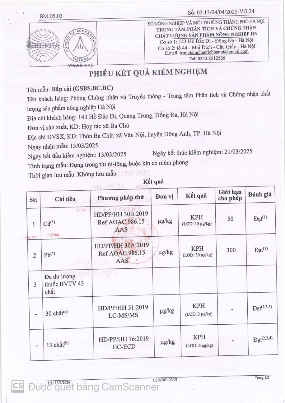 - Đơn vị: HTX BA CHỮ