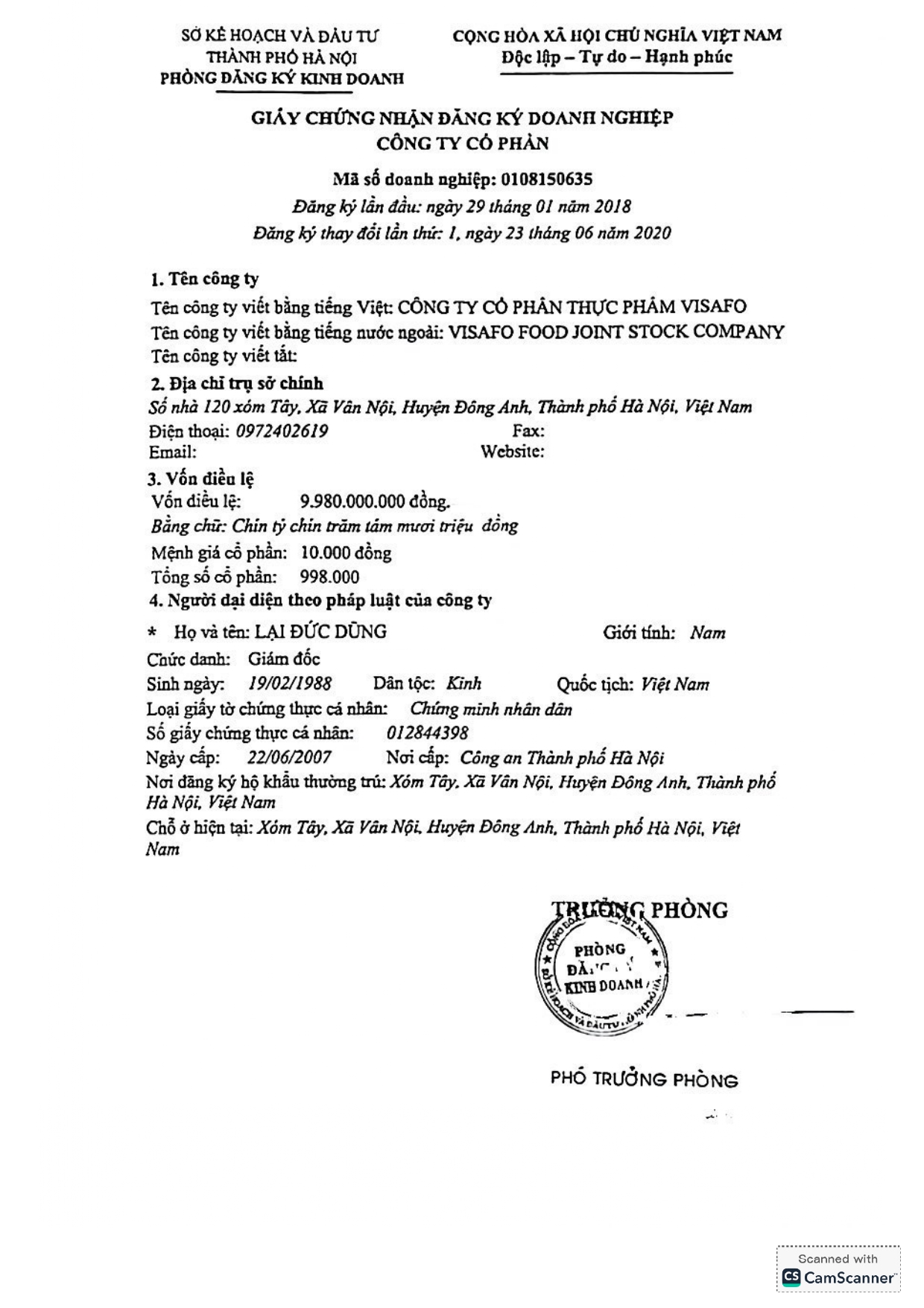 Nhà cung cấp Công ty cổ phần thực phẩm VISAFO