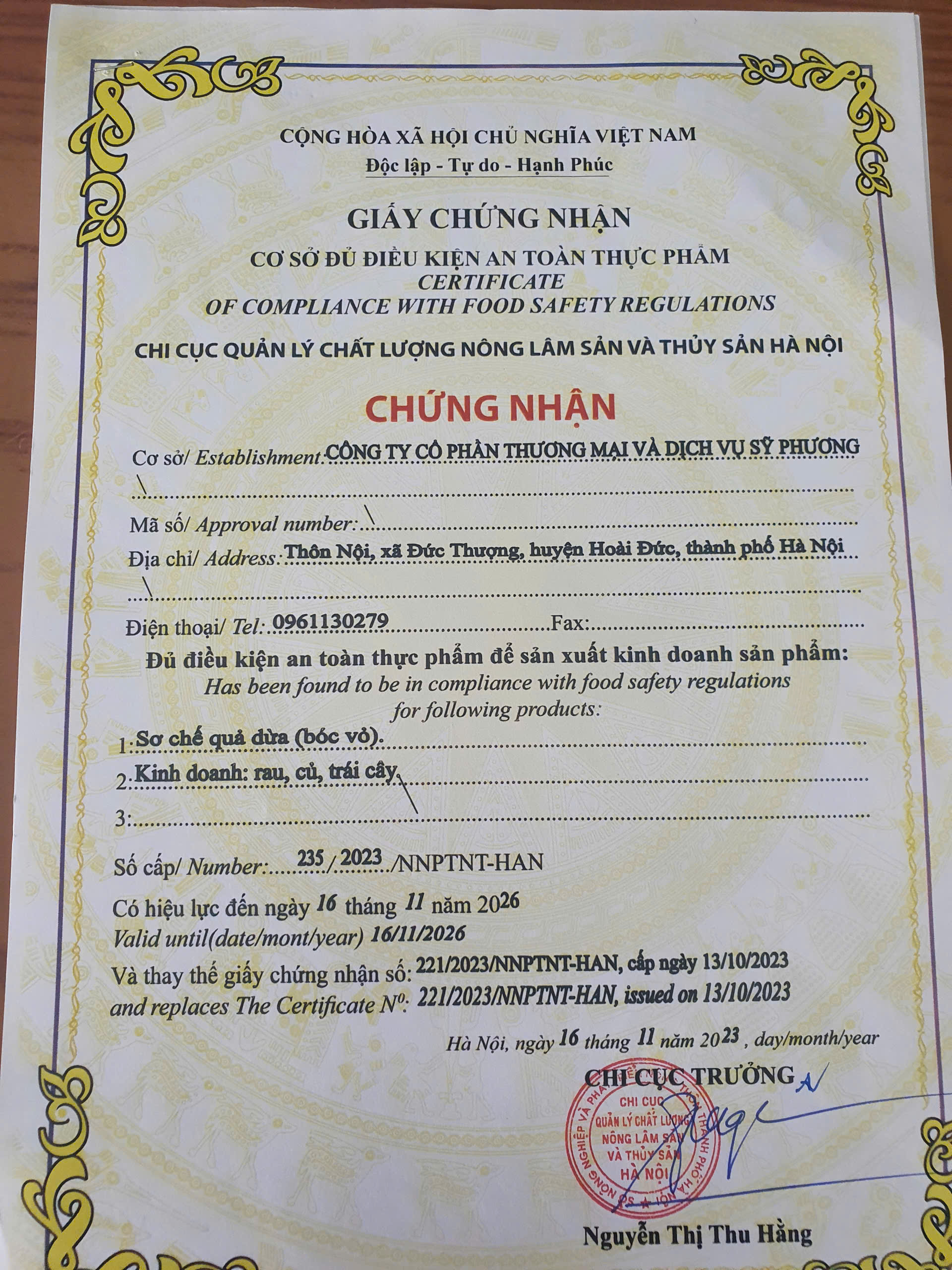 ĐƯỢC CHỨNG NHẬN: