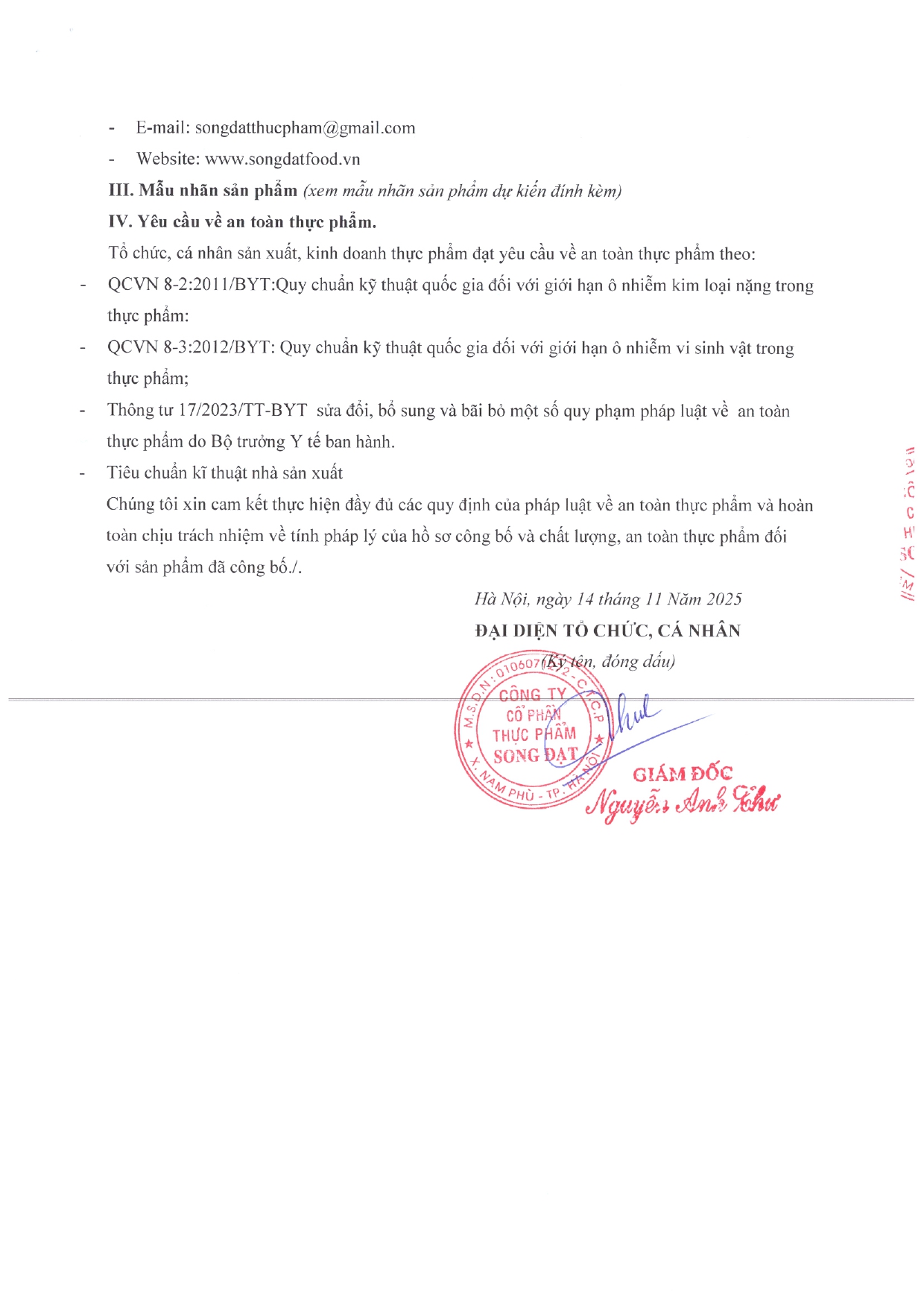 Công ty Cổ phần thực phẩm Song Đạt xin kính chào quý khách, cảm ơn quý khách đã sử dụng sản phẩm của chúng tôi!