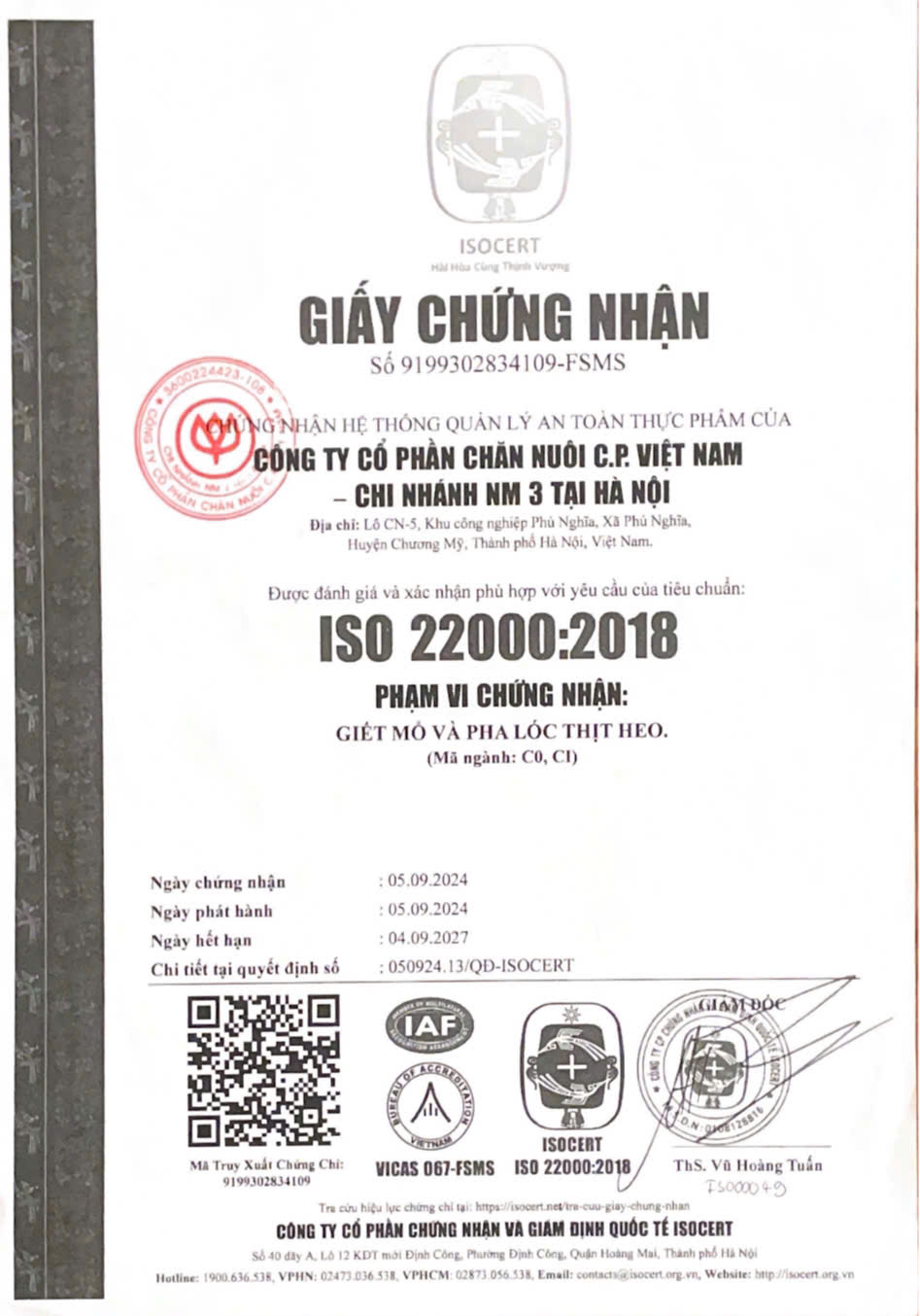 Nguồn gốc nhà cung cấp: CÔNG TY CỔ PHẦN CHĂN NUÔI C.P VIỆT NAM - CHI NHÁNH NM 3 TẠI HÀ NỘIĐịa chỉ: Lô CN-5, KCN Phú Nghĩa, Xã Phú Nghĩa, Huyện Chương Mỹ, Thành phố Hà Nội, Việt NamSơ chế và đóng gói: CÔNG TY TNHH THỰC PHẨM DUY KHÁNHĐịa chỉ: Khu 11, thôn Bồng Mạc, xã Liên Mạc, huyện Mê Linh, Thành phố Hà NộiHạn sử dụng: Từ 2-4 ngày bảo quản ở nhiệt độ 0 độ C - 4 độ C