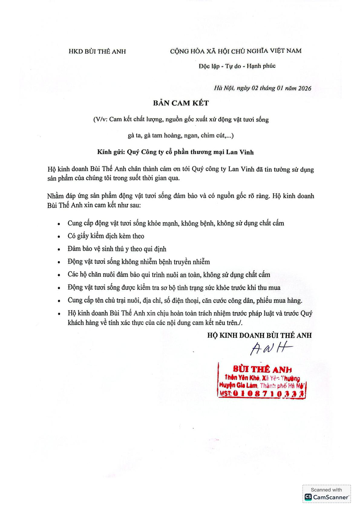 Nhà cung cấp Công ty cổ phần thương mại Lan Vinh
