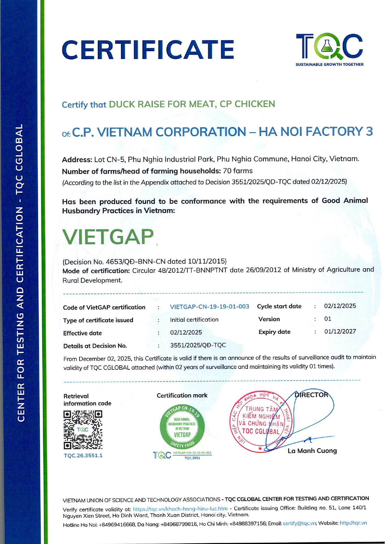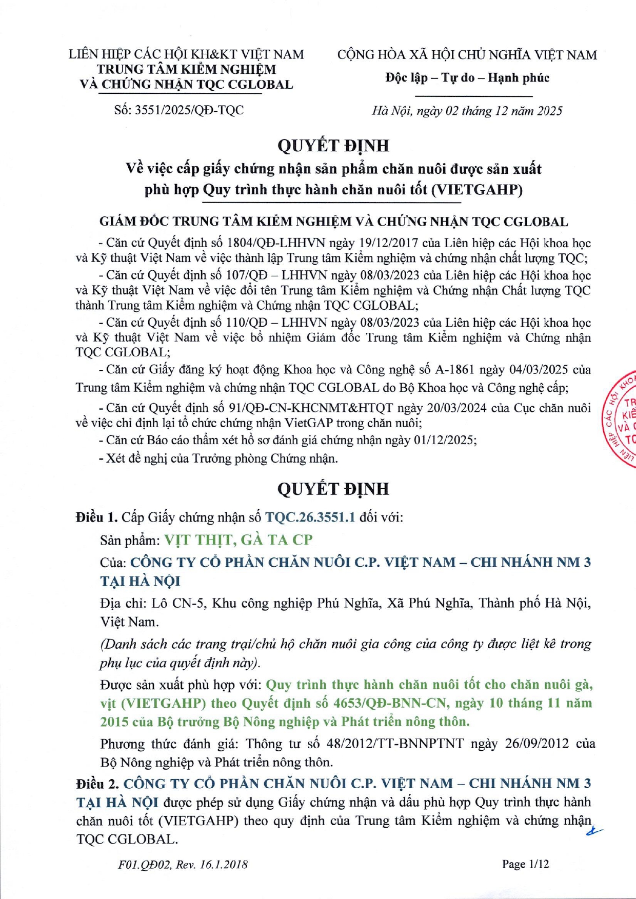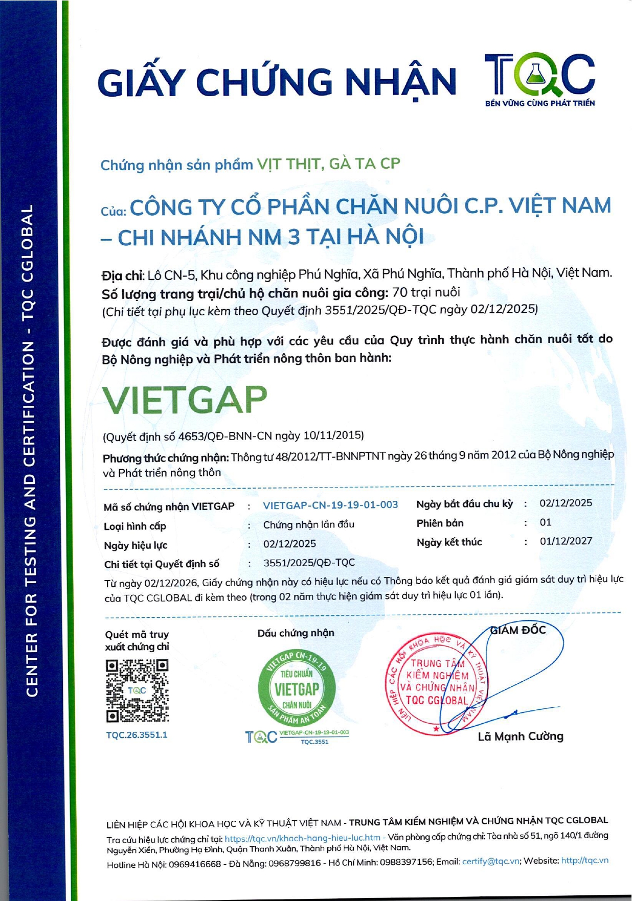 ĐƯỢC CHỨNG NHẬN: