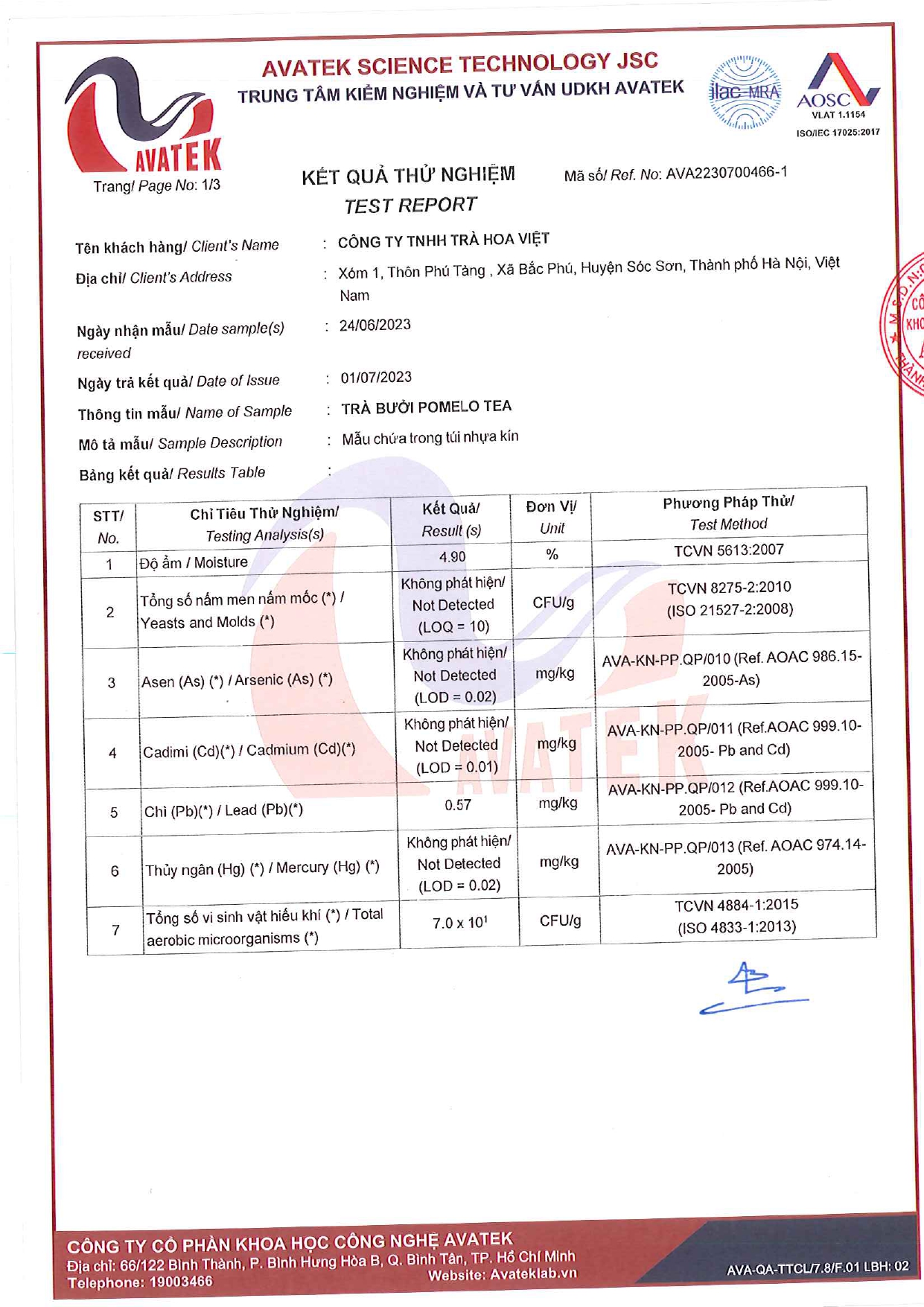 Công ty TNHH Trà Hoa Việt xin kính chào quý khách, cảm ơn quý khách đã sử dụng sản phẩm của chúng tôi!