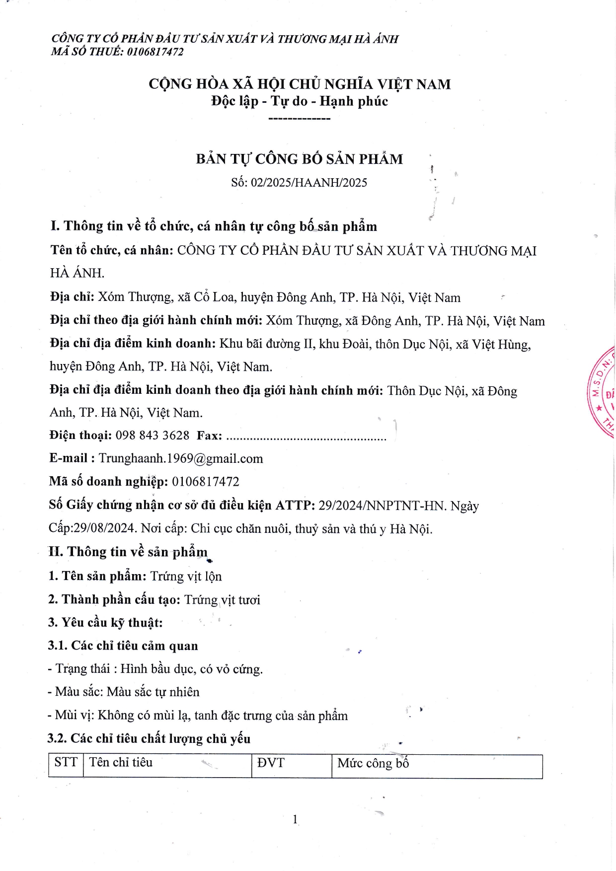 Công ty cổ phần đầu tư sản xuất và thương mại Hà Ánh xin kính chào quý khách, cảm ơn quý khách đã sử dụng sản phẩm của chúng tôi!
